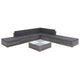 This rattan sofa set combines style and functionality, and will become the focal point of your garden or patio. The whole furniture set is designed to be used outdoors year-round. Thanks to the weather-resistant and waterproof PE rattan, the lounge set is easy to clean, hard-wearing and suitable for daily use. The seat set features a sturdy powder-coated steel frame, which is highly durable. It is also lightweight and modular, which makes it completely flexible and easy to move around to suit any setting. The thick, removable cushions are highly comfortable. Delivery includes 5 corner sofas, 3 centre sofas, 1 ottoman, 1 tea table, 9 seat cushions and 13 back cushions.